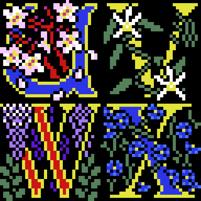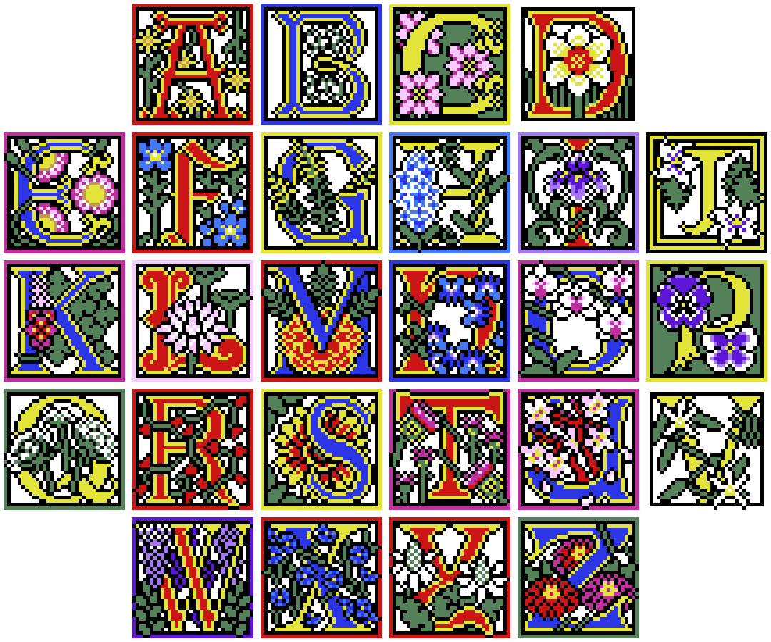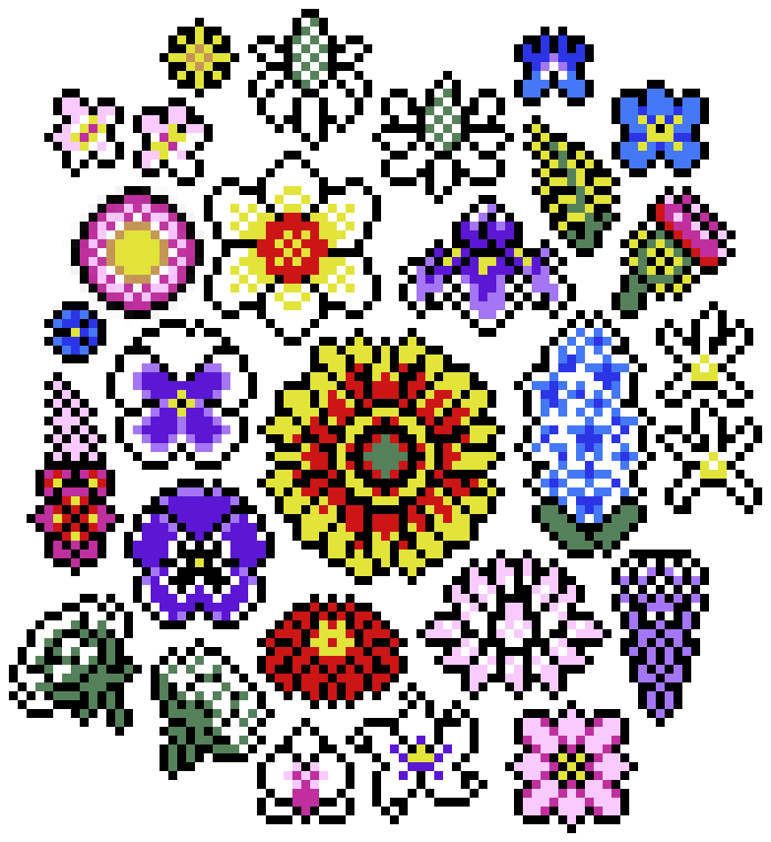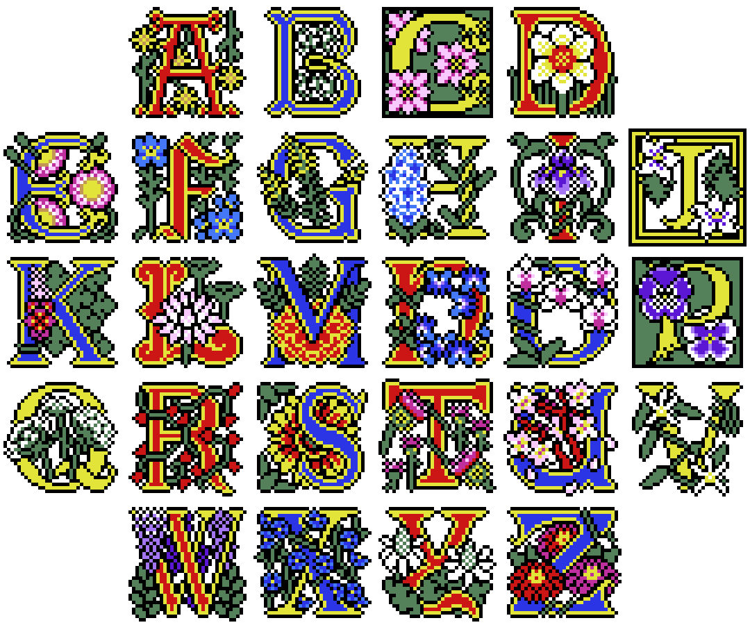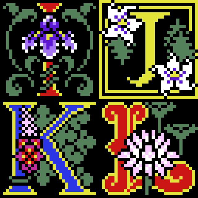 nd here they are all together, plus a compilation of the individual flowers! I honestly hate A through D but I am BURNT OUT! and will leave those for future me to amend. I will start using these on the site because I have been itching for some cute letters to throw into my pages! I also think it'd be fun to make some borders/buttons using the flowers. Unfortunately I merged the layers before copying the complete Marigold flower over so it is lost forever < / 3 .